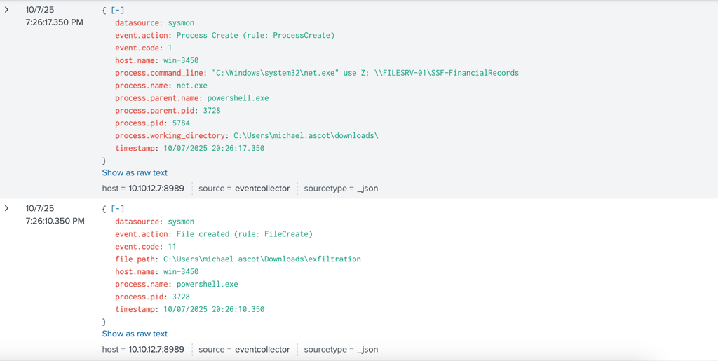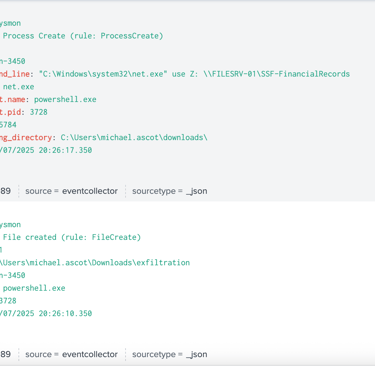 Sysmon Logs: System monitoring logs from machines in the network to detect process creations, modifications, and other system-level events.