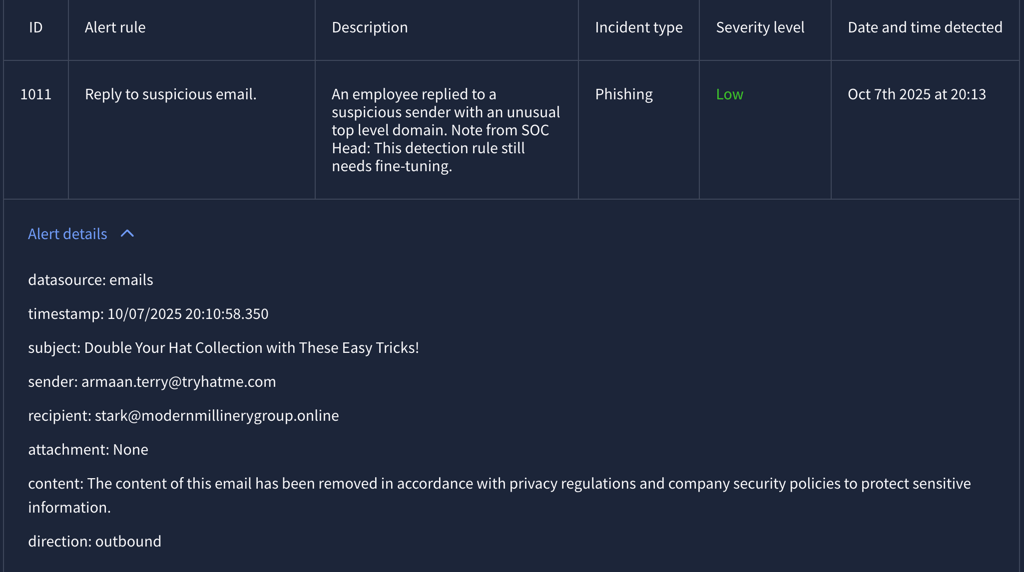 Alert 1011 (Severity: Low)